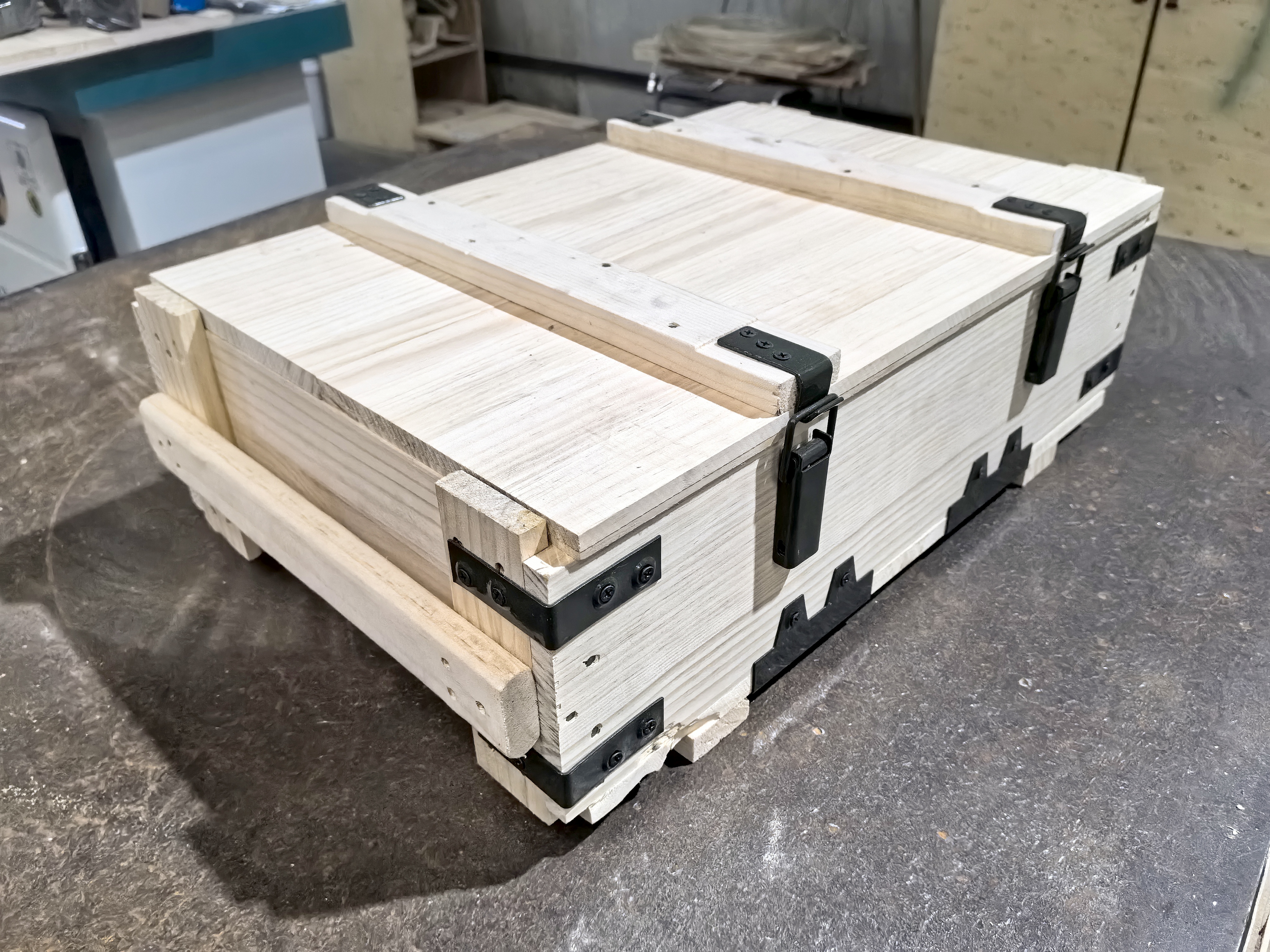 免熏蒸木箱是以天然木材為原料制造,其優點:精確度高、不容易變形,采用高強度螺釘加固,牢固性好;集傳統木質包裝和紙質包裝優點于一身。